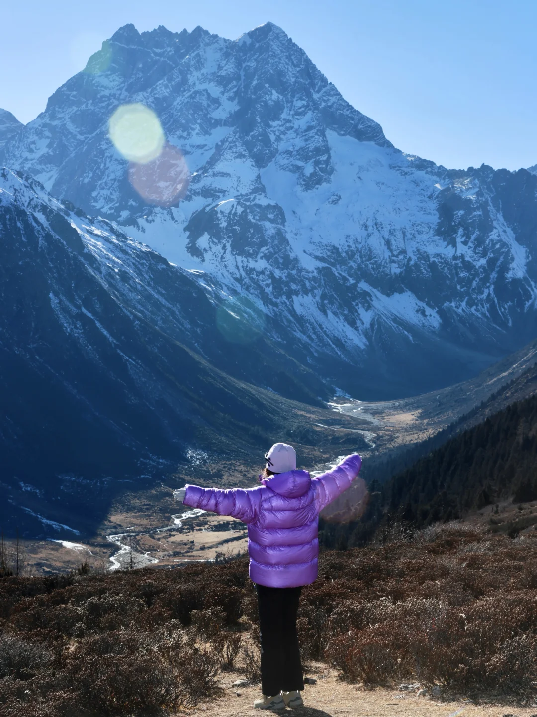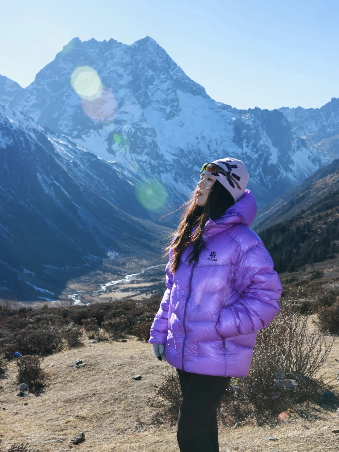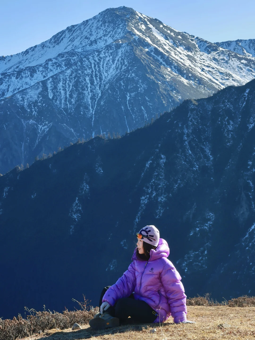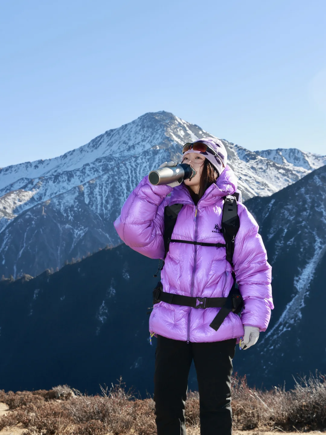 这次我又穿着凯乐石的5000GT雪山羽绒服来到了香格里拉的白马雪山,除了颜色好看之外,它还有1000蓬拒水鹅绒,450g轻量却能锁住温度,让我在山上静态保暖时抵御雪山凛冽的寒风,无论是在营地,还是在山上休息,它都能让我温暖舒适的拥抱大自然