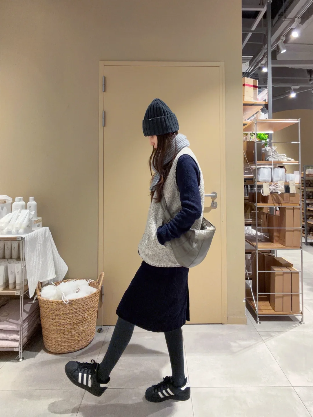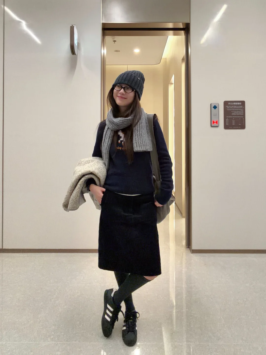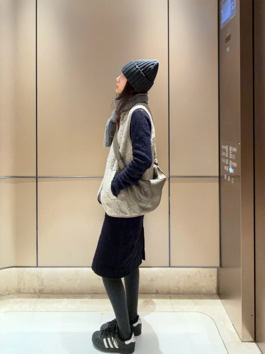 羊毛背心和灯芯绒半裙的组合, 难道不是室内通勤人的好搭档?