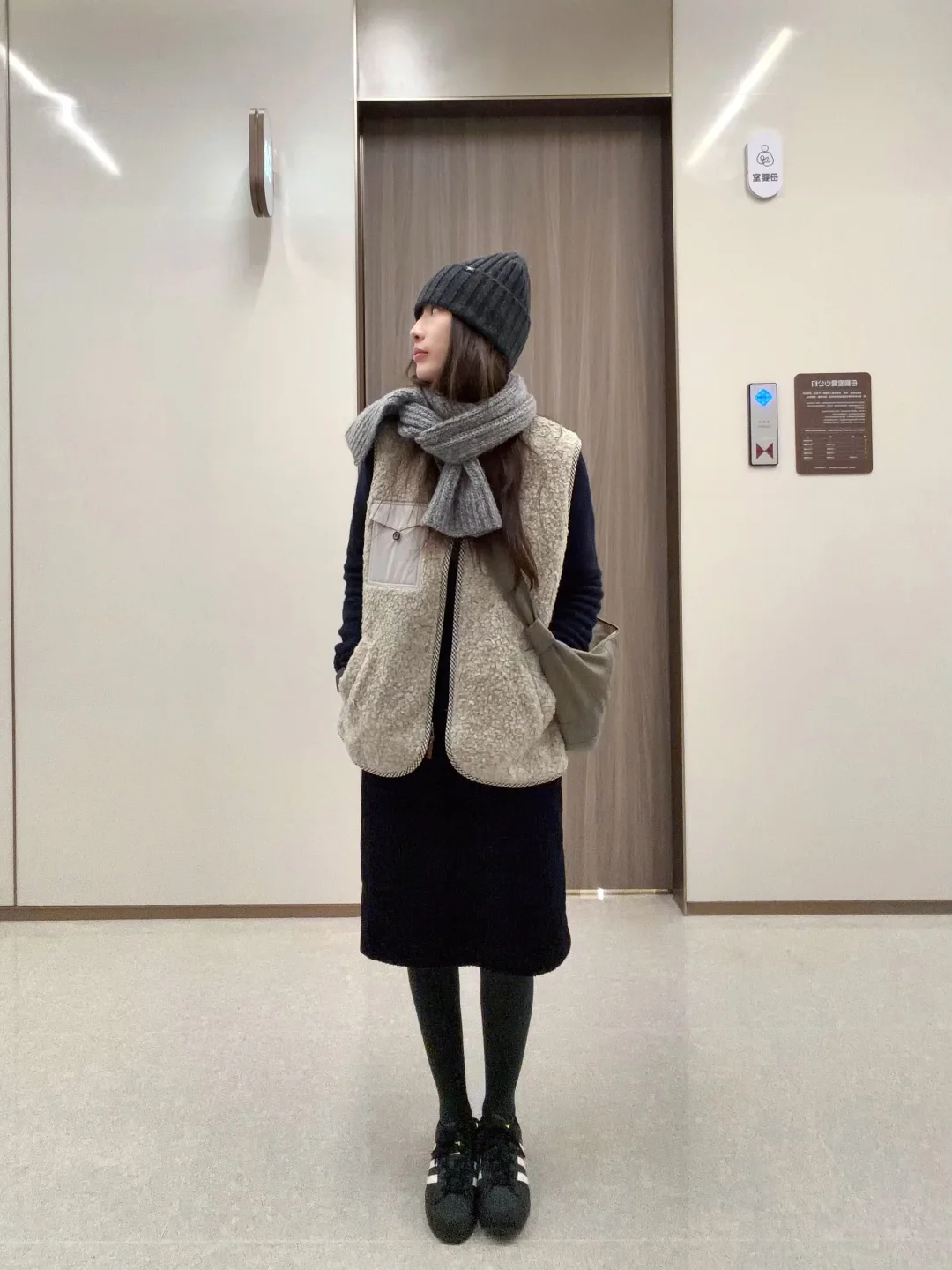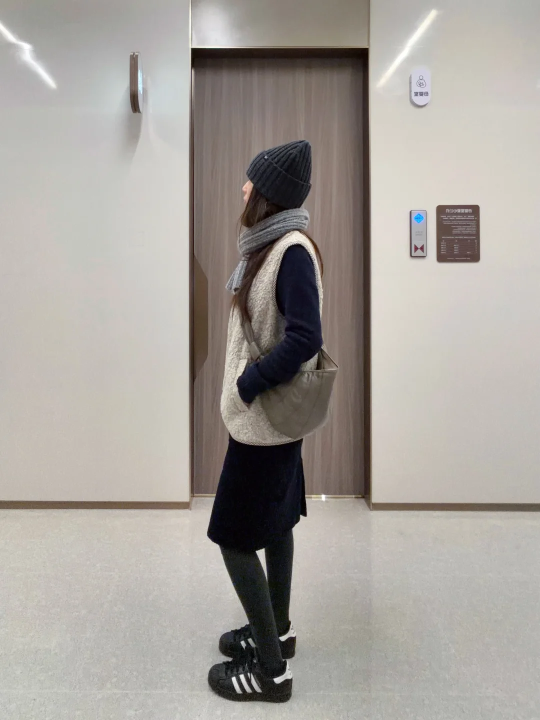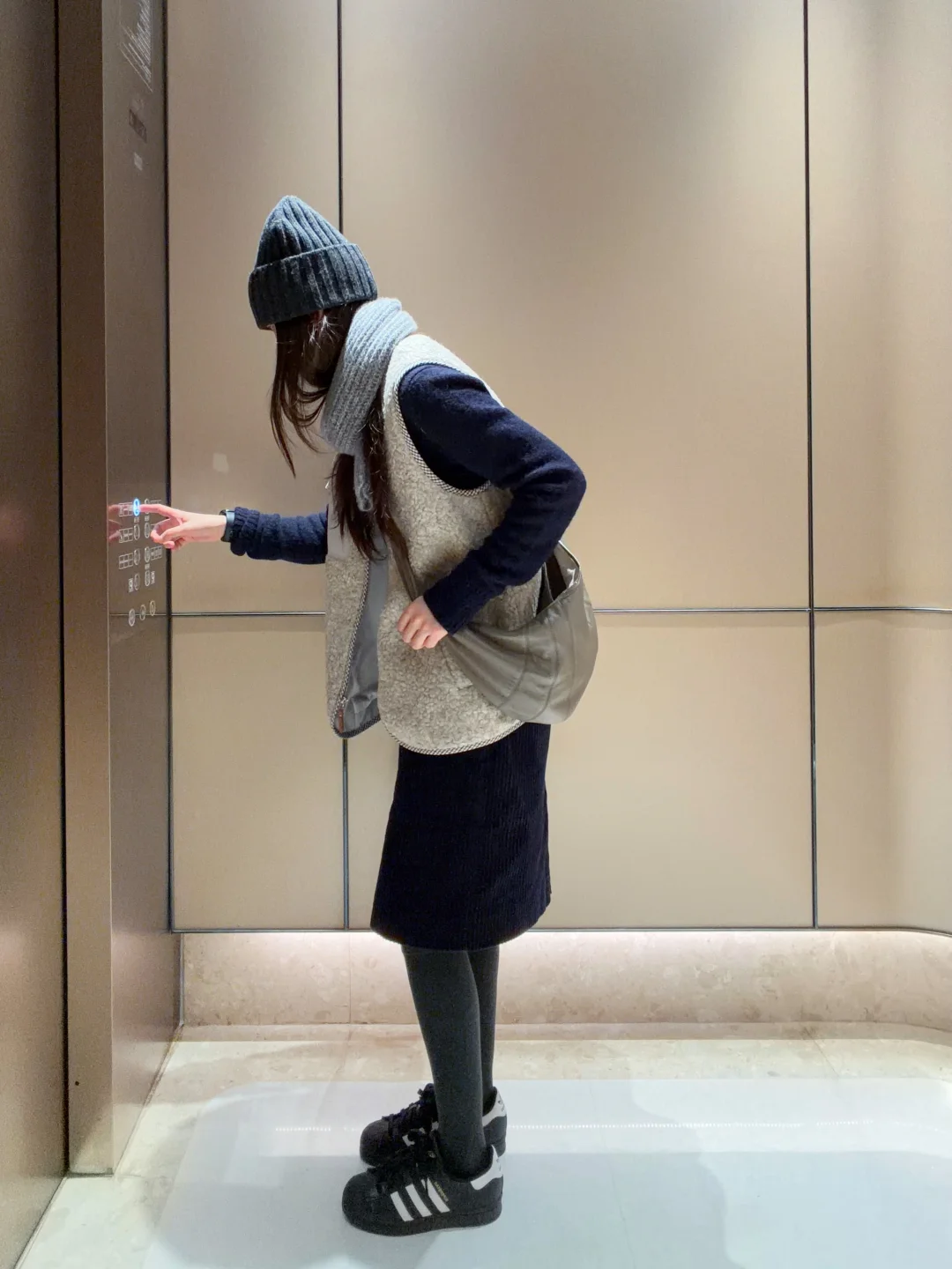 羊毛背心和灯芯绒半裙的组合, 难道不是室内通勤人的好搭档?
