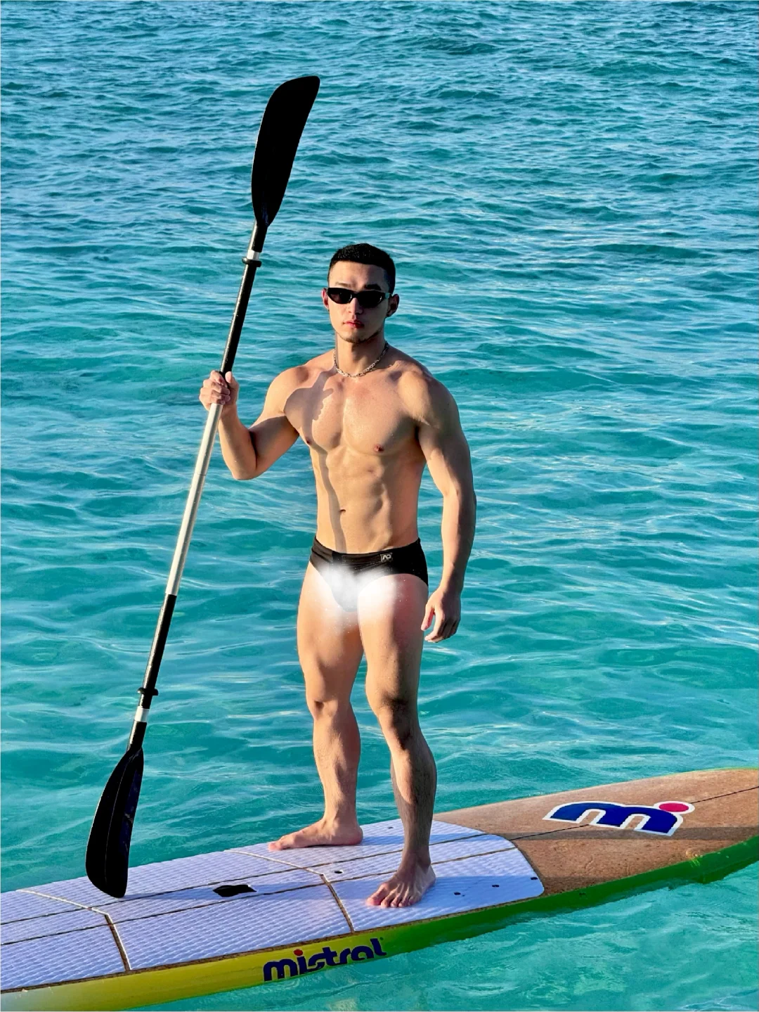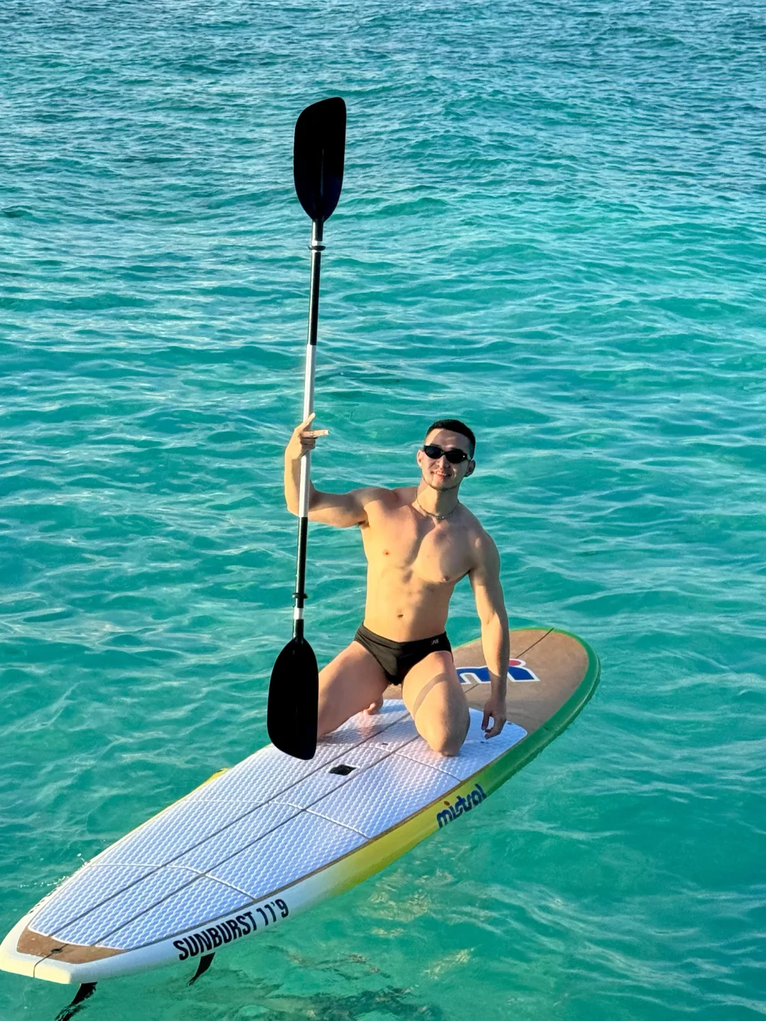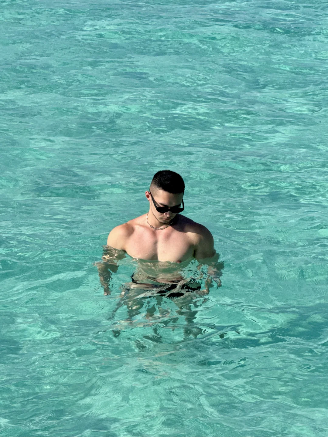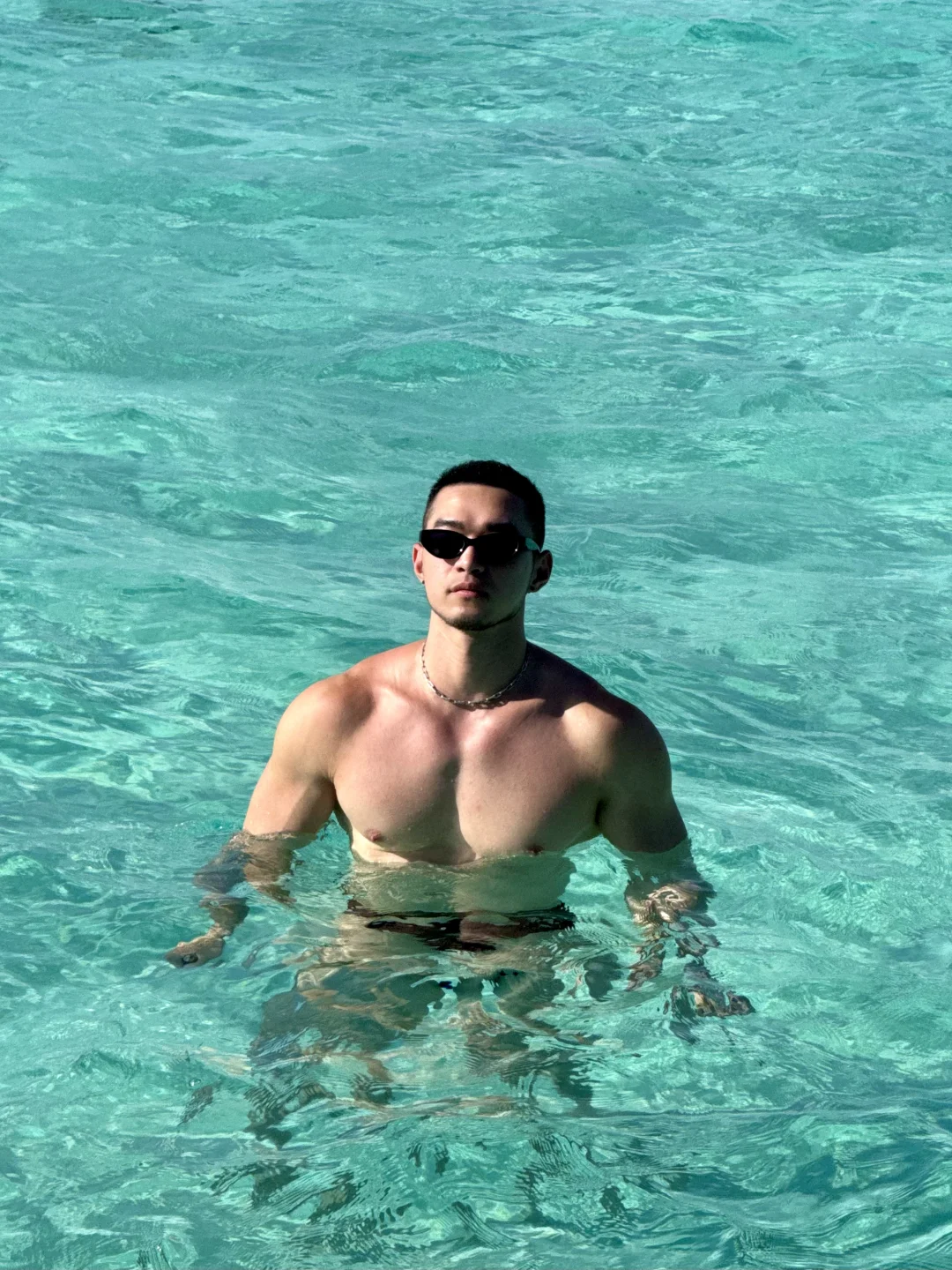 马尔代夫 肌肉男 白皮 海边玩水 甘格西 甘格西水屋