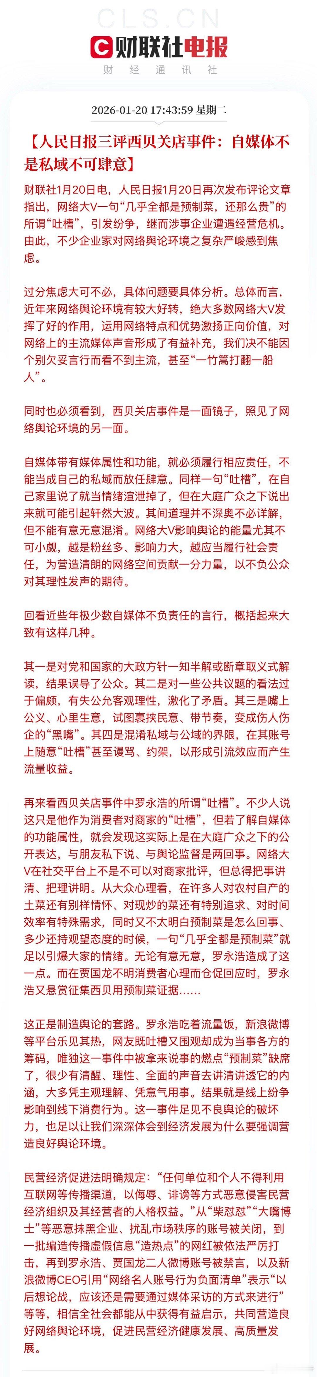 大家可以看看人民日报连着三天发文评罗永浩西贝事件这个定调大家能看明白了吗?孰错孰对,不要被舆论牵着鼻子走,要有自我分辨能力西贝