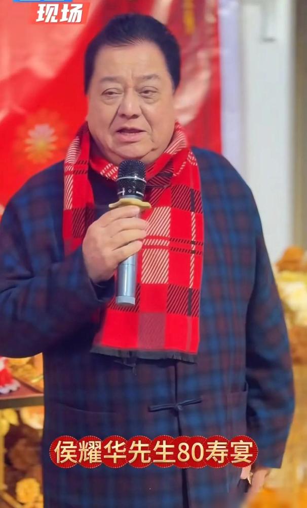 1月19日,相声演员侯耀华迎来80岁大寿! 看到现场照片,李金斗、陈寒柏、刘际这些相声界的老面孔都聚齐了,李金斗甚至连徒弟付强都带过来认门贺寿,场面搞得确实挺大。 说实话,我最先关注到的是侯老这身寿宴穿搭,这审美真的太抢镜了。 黑色复古盘扣褂子配上豆沙红的裤子,最顶的是脚下那双亮红色皮鞋,没点自信气场一般人真不敢这么穿。 感觉这种大胆的配色可能也是老爷子心境的一种体现,到了八十岁还能这么愿意“捯饬”,心态大概还是挺不服老的。 现场大家基本都备了礼物,这种老派的江湖礼数在现在的相声圈里,看着还挺有一种厚重的仪式感。 尤其李金斗还专门在席间上台发表讲话,这种老友间的撑场面和徒子徒孙的跟随,估计就是他们这行最看重的东西。 最后大合照里侯老稳稳坐在C位,那脸上的笑意完全藏不住,看这精神头状态确实不像八十岁的人。 到了这个年纪,还能有这么多圈内老友聚在一起折腾生日宴,这种晚年的热闹劲儿确实是种福气。