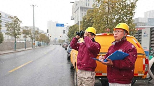 当日上午,该公司运检部线缆一班班员卞辰耀、周逸彬采用便携式手持红外测温仪在皇庆路附近开展寒潮期间线缆一体化巡视,确保下雪低温情况下供电线路无缺陷运行。“我们对电缆终端头、线路T接处等关键部位开展重点测温,同时结合巡视排查临时施工工地,最大程度降低外破风险。”卞辰耀说道。