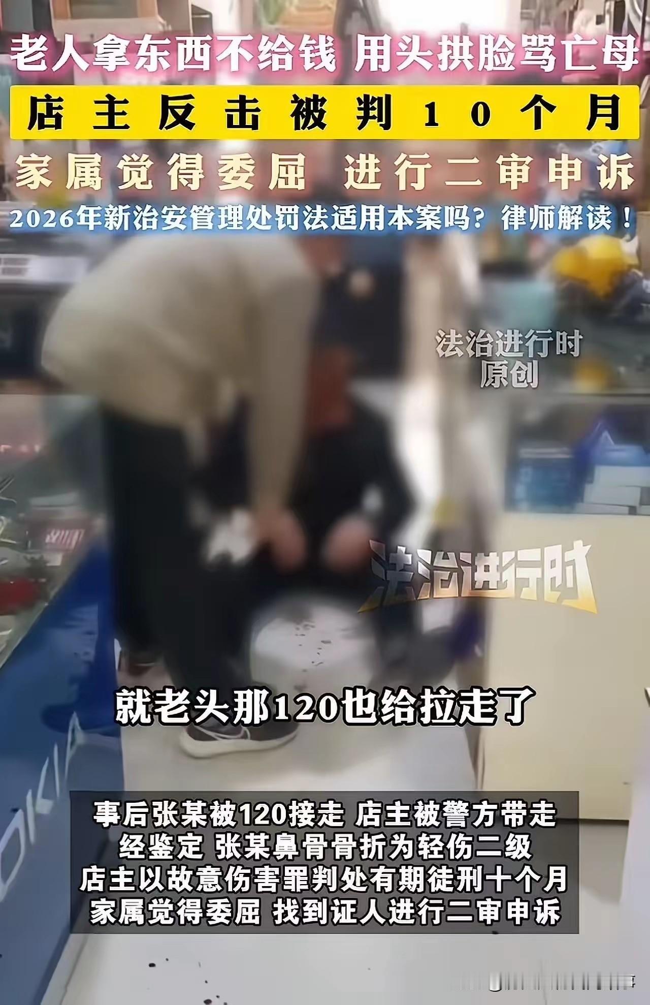 这里为你梳理事件核心、法律争议与网友舆论,并给出清晰的观点与建议: 事件概况(网传完整版本) 1. 事发江苏徐州:老人持唱戏机进店要新充电器,拿了不付款直接离开;店主提醒后,老人辱骂店主刚去世的母亲,并用头持续拱撞店主,致店主被顶到柱子、面部红肿。 2. 店主忍无可忍还击一下,致老人鼻骨骨折,鉴定为轻伤二级。 3. 一审法院认定店主防卫过当,构成故意伤害罪,判处有期徒刑10个月;店主家属不服,已提起上诉,目前等待二审结果。 核心法律争议 - 正当防卫边界:《刑法》第20条规定,为制止正在进行的不法侵害而采取的必要防卫,不负刑责;防卫过当(超过必要限度、造成重大损害)需负刑责,但应减轻或免除处罚。 - 争议焦点:老人的辱骂+持续头撞,是否属于足以让店主采取对等反击的不法侵害?店主的“还击一下”,是否明显超过必要限度(比如是否可用躲避、报警等方式替代)? 网友舆论(典型观点) 1. 支持店主派:老人“白嫖+辱母+动手”在先,店主是情绪崩溃下的本能反击,10个月刑期过重,判决未体现“天理人情”。 2. 法律理性派:轻伤二级已达刑事立案标准,法院按防卫过当判罚,符合现行法律框架;情绪不能凌驾于法律之上,店主本可选择报警处理。 3. 折中派:应综合考虑老人过错、店主丧母期间的情绪状态,从轻处罚(如缓刑、免予刑事处罚),而非实刑10个月。 实用建议 1. 遇到类似冲突,优先躲避+报警+固定证据(监控、录音、证人证言),避免因情绪失控导致防卫过当。 2. 若已涉刑,及时委托专业律师,重点围绕不法侵害的紧迫性、防卫行为的必要性、损害结果的合理性进行辩护,争取认定为正当防卫或从轻处罚。 素材来源于网络,侵权删除。