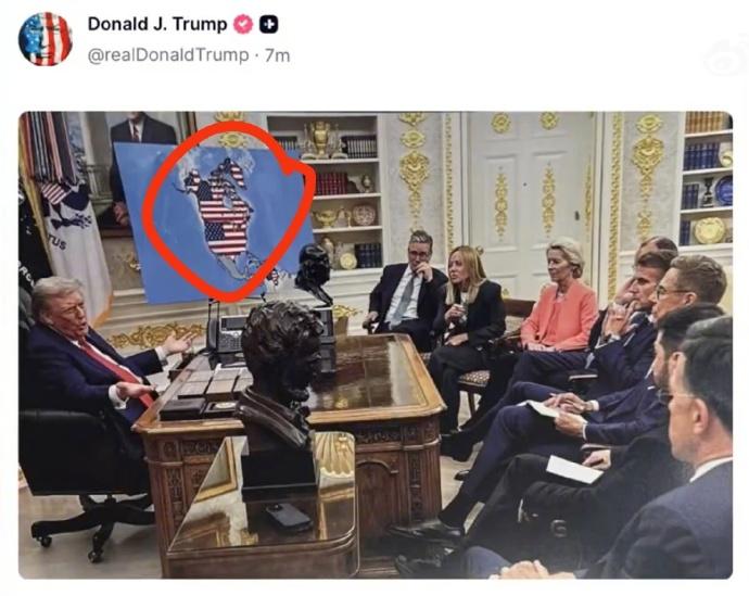 特朗普绝对是近代史上最牛B的大帝[赞][赞]就是上世纪耍浑的“元首”国王,也没有敢这么嚣张画地图的! 欧洲、加拿大、委内瑞拉,赶紧献美女吧。川帝好这口,没准能延长苟活。