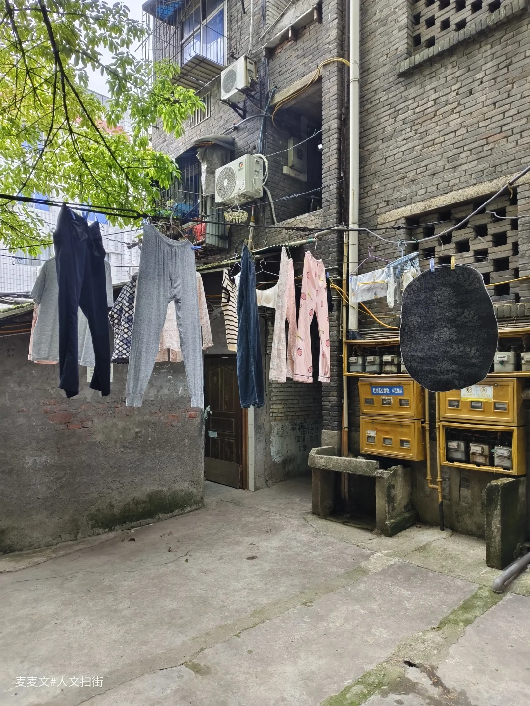 家属区里还能感受到当年的生活气息。一些老式的窗户和阳台上,晾晒着衣物,偶尔能看到几位老人坐在门口,或是聊天,或是静静地看着少有的过往行人。这些青砖老房子户型相对简单,空间不大,但一砖一瓦都承载着曾经职工们的生活记忆。