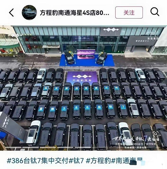 方程豹钛7:“多谢老板,这排面给得够足!”说真的,汽车租赁公司都这么赚钱的吗?居然一口气采购386辆方程豹钛7,就算按最便宜的17.98万来算,也得6940万。不管是一次性付清还是分批付款,这老板的实力绝对没话说!想问一句,要是老板没几十亿身家,敢这么大手笔吗?大伙儿觉得呢?