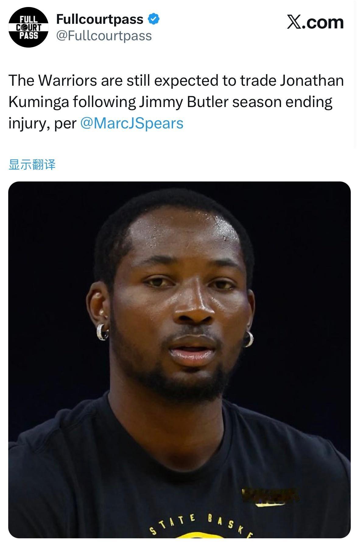 据记者Marc J. Spears报道,尽管巴特勒遭遇了赛季报销的伤病,勇士仍预计会交易库明加。 据勇士记者Slater报道,勇士队正在考虑让库明加重新回到球队的轮换阵容中。一旦获得征召,他已做好登场比赛的准备。