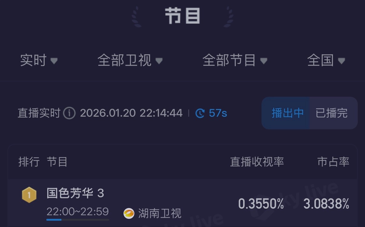 实至名归的收视王者!《国色芳华》重映力压同期剧集,单集最高收视0.219%跻身黄