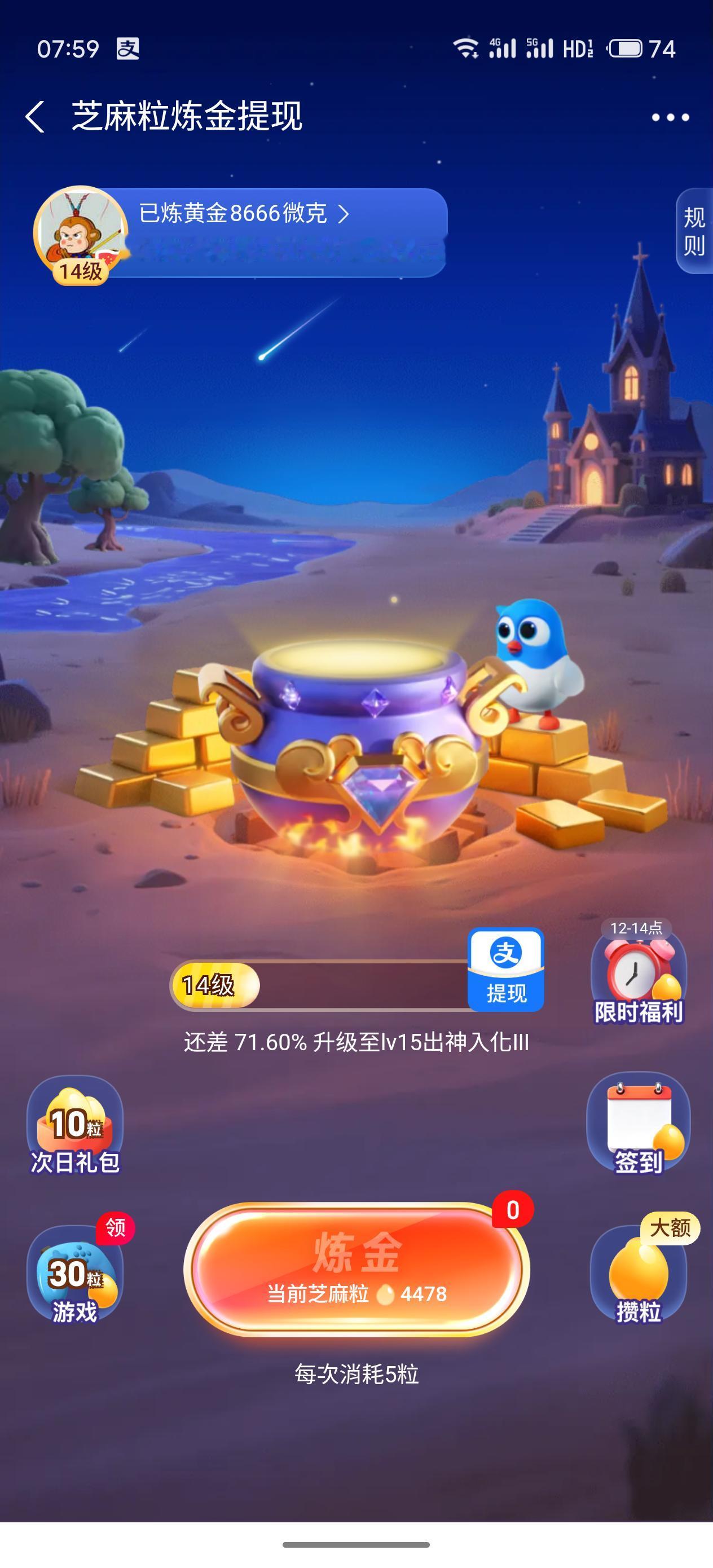 留意了一下 今天早晨进入芝麻粒炼金是81.60% 25粒芝麻喂完以后是71.60