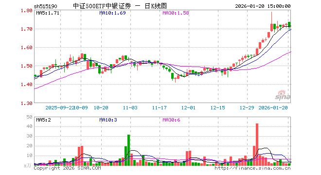 中证500ETF中银证券(515190)业绩比较基准为中证500指数收益率,管理人为中银国际证券股份有限公司,基金经理为张艺敏、刘先政,成立(2020-04-30)以来回报为71.61%,近一个月回报为14.90%。