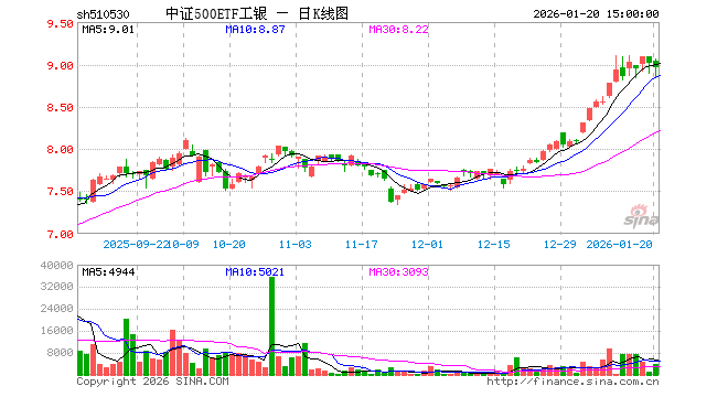1月20日,中证500ETF工银(510530)跌0.60%,成交额346.65万元。当日份额增加50.00万份,最新份额为4797.94万份,近20个交易日份额增加150.00万份。最新资产净值计算值为4.30亿元。