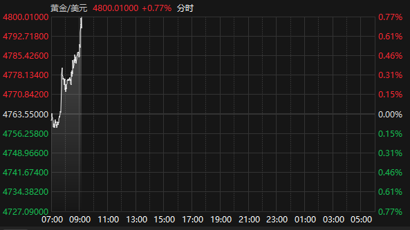 国际现货黄金突破4800美元/盎司关口