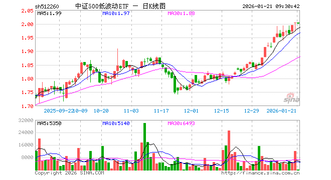 中证500低波动ETF(512260)业绩比较基准为中证500行业中性低波动指数收益率,管理人为华安基金管理有限公司,基金经理为苏卿云,成立(2018-11-30)以来回报为100.63%,近一个月回报为10.08%。