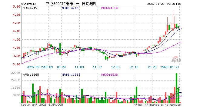 1月21日,中证500ETF泰康(515530)开盘跌0.27%,报4.464元。中证500ETF泰康(515530)重仓股方面,胜宏科技开盘跌0.24%,华工科技跌1.10%,先导智能跌1.21%,芯原股份跌1.22%,巨人网络跌0.02%,指南针跌0.35%,卧龙电驱跌0.89%,欣旺达跌0.66%,赤峰黄金涨2.97%,通富微电跌0.02%。