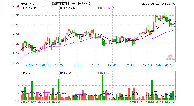 1月21日,上证50ETF博时(510710)开盘跌0.36%,报4.382元。上证50ETF博时(510710)重仓股方面,贵州茅台开盘涨0.00%,中国平安涨0.06%,招商银行涨0.49%,紫金矿业涨1.21%,长江电力涨0.04%,兴业银行涨0.20%,恒瑞医药涨0.02%,中信证券跌0.07%,寒武纪跌0.57%,药明康德跌0.46%。