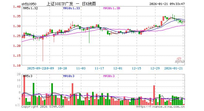 1月21日,上证50ETF广发(510950)开盘跌0.15%,报1.315元。上证50ETF广发(510950)重仓股方面,贵州茅台开盘涨0.00%,中国平安涨0.06%,招商银行涨0.49%,紫金矿业涨1.21%,长江电力涨0.04%,兴业银行涨0.20%,恒瑞医药涨0.02%,中信证券跌0.07%,寒武纪跌0.57%,中芯国际跌1.02%。