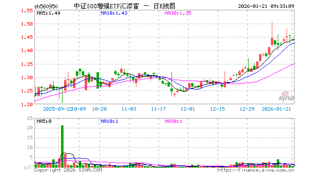 中证500增强ETF汇添富(560950)业绩比较基准为中证500指数收益率,管理人为汇添富基金管理股份有限公司,基金经理为许一尊,成立(2023-07-19)以来回报为44.36%,近一个月回报为11.44%。