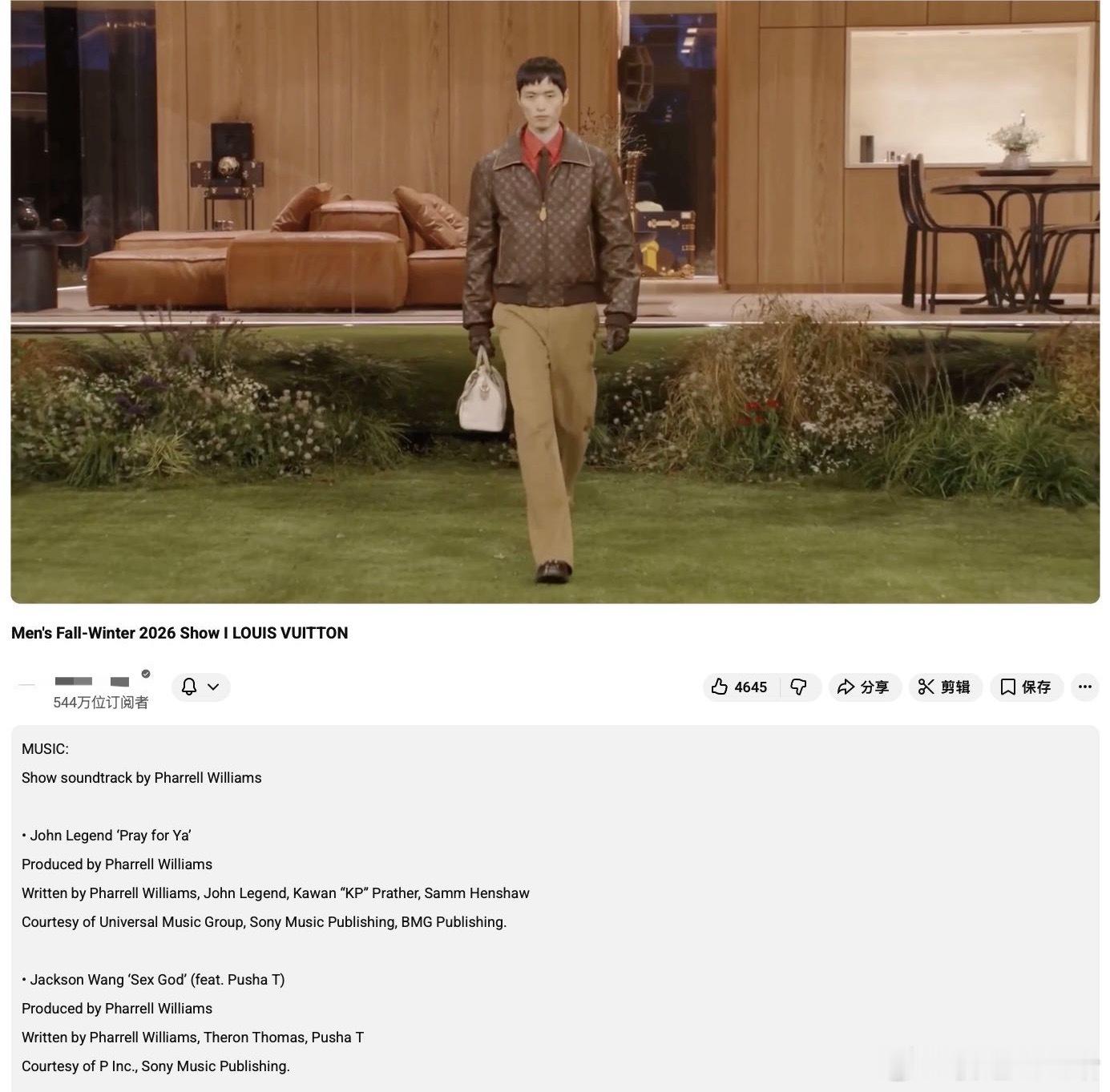 LV大秀放了王嘉尔新歌 顶级音乐邂逅顶级时尚盛宴,与LV创意总监菲董Pharrell、顶级说唱歌手Pusha T联手打造的《Sex God》,在成为巴黎LV大秀秀场专属BGM,作为少数进入顶级时尚与海外音乐市场核心圈层的亚洲艺术家,嘉尔国际时尚影响力再次得到彰显。