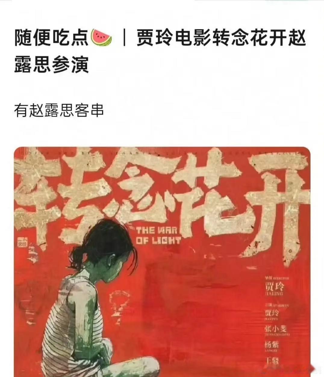 网传赵露思客串贾玲新电影 网传赵露思客串贾玲新电影《转念花开》,不知真假,先期待