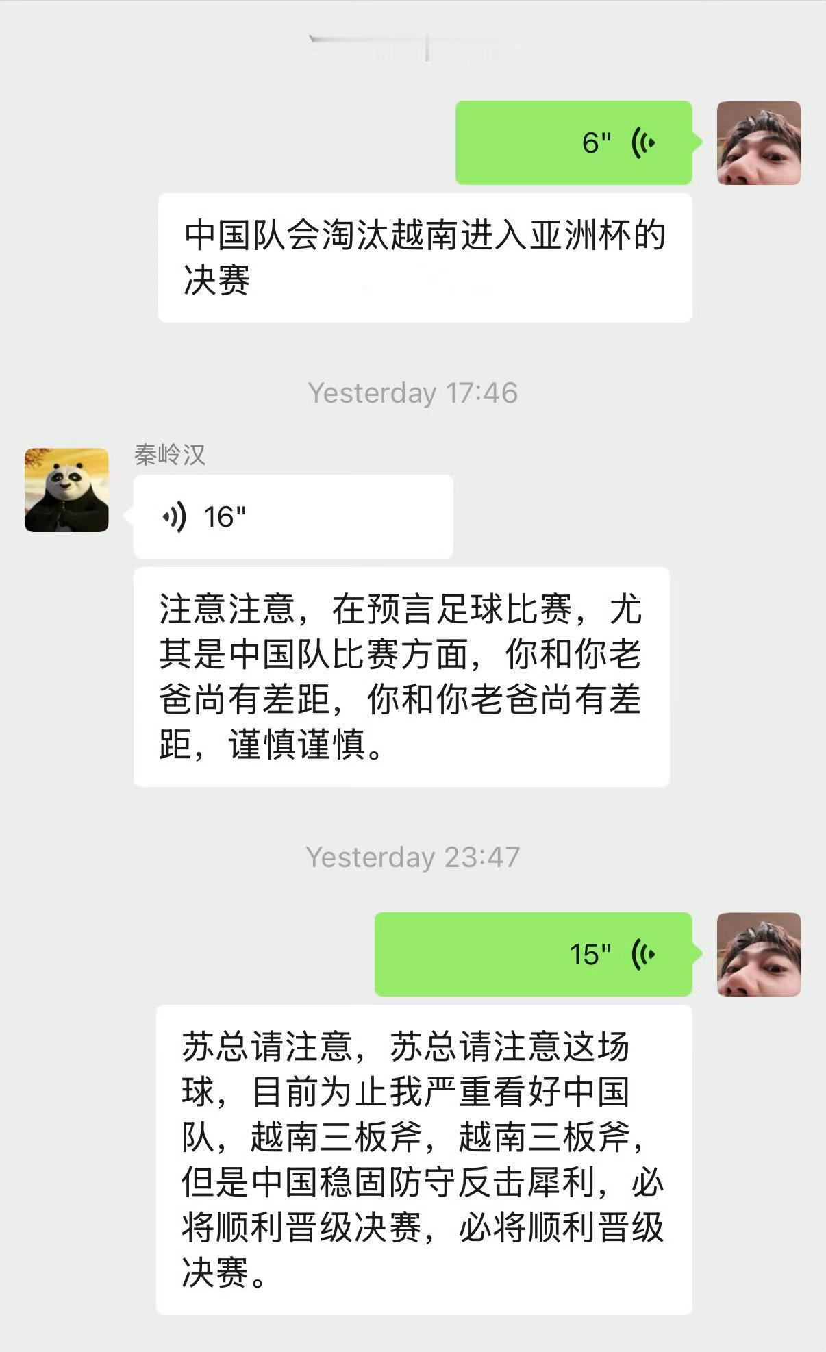 苏醒预言“中国队会淘汰越南进入亚洲杯决赛”! 对于这个预言,老苏总更为自信,他觉得苏醒在这方面与自己尚有差距,希望苏醒谨慎发言。 真的很喜欢看这对父子之间的互动和交流,父慈子孝还又棋逢对手、将遇良才之感。 关于比赛结果,这次我站苏醒,我也看好中国队。 在这立下flag,看看谁说的对。