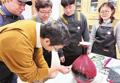 在天津工业大学近期举办的“中国传统髹饰技艺人才进修班”上,学员在创作作品。天津工业大学供图