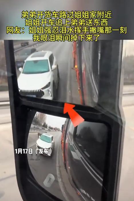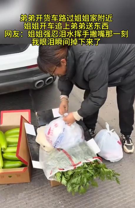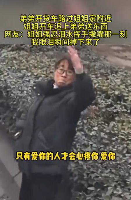 泪目了!近日,山东,弟弟开货车路过姐姐家,本想只是匆匆路过,没打算停留,不料姐姐得知消息后竟立马开车追上去给弟弟送东西,最后强忍眼泪挥手撇嘴的样子,直接看哭全网。 最近啊,山东的一对姐弟在网上那是火得一塌糊涂,也没啥刻意安排的剧本,更没啥煽情的台词,就这么一段普普通通的视频,硬是把无数网友看得眼泪汪汪的,看一回哭一回。 开大货车的弟弟路过姐姐家那片,本来想着赶路就不打扰姐姐了,结果姐姐知道后,开着车,愣是追了三公里,就为了见这一面。 那匆匆忙忙的几分钟,还有最后强忍着眼泪挥手告别的样,真的是把咱中国人骨子里那份亲情给演活了。 这弟弟叫小周(化名),干长途货运这行当也有五六年了,这一年到头啊,大半时间都在那车轱辘上转悠,两只手握方向盘握得全是老茧,一个月能回家待个三天,那都算过年了。 这次拉货的路线导航一指,正好要路过姐姐家所在的那个县城,这时候货主催得急,他也怕给姐姐添乱,就在微信上随口说了句:“姐,我路过你家附近,赶时间就不停了哈”,消息发过去,还没等姐姐回呢,一脚油门就接着往前开了。 可这头姐姐正在厨房里熬粥呢,一看手机这消息,那还了得!当时就把锅铲往灶台上一扔,转身就开始那个忙活啊,又是装水果又是拿蔬菜,恨不得把家都搬空了给弟弟带上。 收拾好大包小包,姐姐二话不说,开上车就追出去了。 这一路上,姐姐死死盯着前边,生怕漏掉了弟弟那辆大货车,一个红绿灯路口,还真让她给瞅见了那熟悉的大家伙。 姐姐赶紧在那儿按喇叭,示意弟弟停车,弟弟刚把车靠边停稳当,姐姐也停下来了。 “快接着快接着,别老吃那些泡面,那玩意伤胃!”“这馒头还热乎呢,揣怀里捂着,饿了就拿出来啃两口。”姐姐一边往货车副驾驶座上塞东西,一边嘴就没停过,全是那些细碎的叮嘱。 弟弟也赶紧跳下车来帮忙接,嘴上还说着:“姐,不用拿这么多,车上还有吃的呢”,可那手接东西的速度是一点没慢。 他看着姐姐那被风吹得乱糟糟的头发,还有眼角那怎么也藏不住的心疼劲,本来想说点啥贴心话,最后也就憋出一句:“姐,我挺好的,你放心吧。” 但这开货车的就是跟时间赛跑,这边东西刚搬完,弟弟手机就响了,还是货主在催,弟弟只能急急忙忙地说:“姐,不行了,我得走了。” 姐姐一听,赶紧退到马路牙子上,脸上挂着笑朝他挥手,可就在弟弟那车刚一发动,车身刚往前一挪的时候,姐姐脸上那笑立马就挂不住了。 只见姐姐紧紧抿着嘴唇,嘴角忍不住地往下撇,那眼眶子肉眼可见地就红了,眼泪就在里头打转转,可她硬是咬着后槽牙没让它掉下来。 她就那么站在原地,使劲儿挥着手,扯着嗓子喊:“路上慢点开啊!到了地方给我发个信息报平安!”弟弟从后视镜里瞅着姐姐那身影,越来越小,越来越小,可还在那儿挥手呢。 这一场相聚,满打满算也就五六分钟的功夫,弟弟连口水都没顾上喝,更别提吃顿热乎饭了。 有人就说闲话,说姐姐这趟太不值了,光油钱都比送的那点东西贵,可这话只有姐姐自己心里明白,她图的哪是那点吃食啊,她是想亲眼瞅瞅弟弟是不是好好的,是想把家里的那股子味道实实在在地塞到他手里,这样她心里才能踏实,晚上才能睡着觉。 网上的评论区早就炸了锅了,有人说:“这一幕太像我妈追着我哥货车送鸡蛋那会了。”有人感慨:“成年人的相聚啊,真的是连吃顿饭的时间都成了奢侈品。” 还有人说:“姐姐那后备箱里装的根本不是东西,那是满满当当的底气啊。”其实这就是咱们中国人的亲情,平时可能不会说啥好听的漂亮话,但那份牵挂总是藏在实实在在的行动里。 弟弟在外面跑长途受的那些罪,凌晨三点在服务区啃凉透的泡面,暴雨天在盘山道上提心吊胆地开,这些苦他从来不跟家里人说,可姐姐心里都跟明镜似的。 她追的哪是货车啊,她是想给弟弟这趟冷冰冰的长途添点少有的热乎气,塞的也不是饭菜,那是怕他在外面受委屈的那份心疼。 那些嘴上说着“不麻烦不麻烦”,背地里却偷偷为你奔波的人,那些分别的时候强忍着眼泪,只盼着你平安的人,才是这世上最疼你的人啊。 现在这视频还在网上转着呢,感动着一拨又一拨的人,让我们想起了每次离家的时候,爸妈给塞得满满当当的行李箱,想起了好久没联系的时候,亲人那一句简单的“最近还好吗”。 这些藏在生活缝隙里的小瞬间,看着不起眼,却是咱们闯荡世界的最大底气。 希望所有在外面奔波的人,都能被这份牵挂温暖着,也希望咱们都能多挤点时间出来,陪陪那些总在等咱们的亲人。 信源:兰陵县融媒体中心