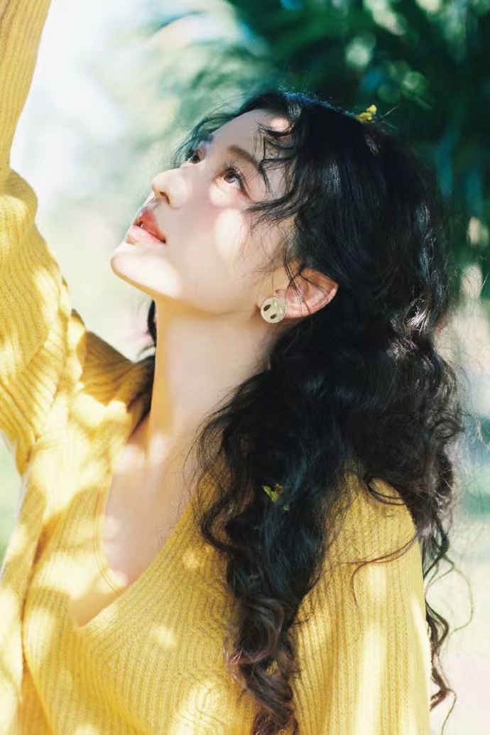 王楚然鹅黄毛衣羊毛卷造型 王楚然鹅黄毛衣羊毛卷造型,王楚然生日照送达,阳光下俏皮的船儿,生日快乐啊~