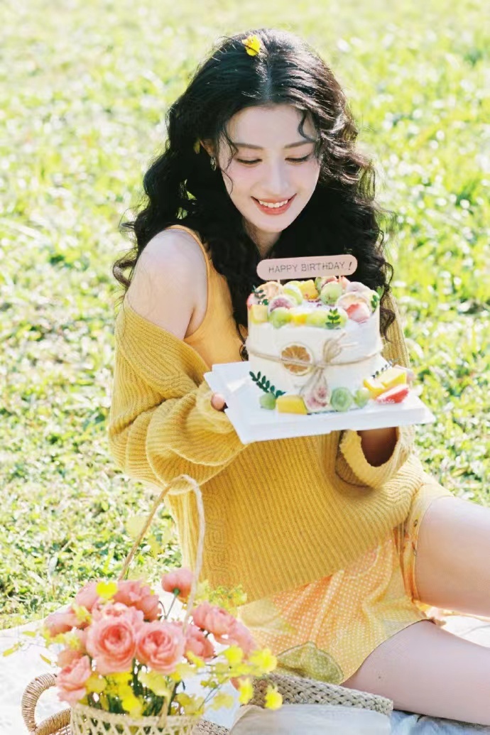 王楚然鹅黄毛衣羊毛卷造型 王楚然鹅黄毛衣羊毛卷造型,王楚然生日照送达,阳光下俏皮