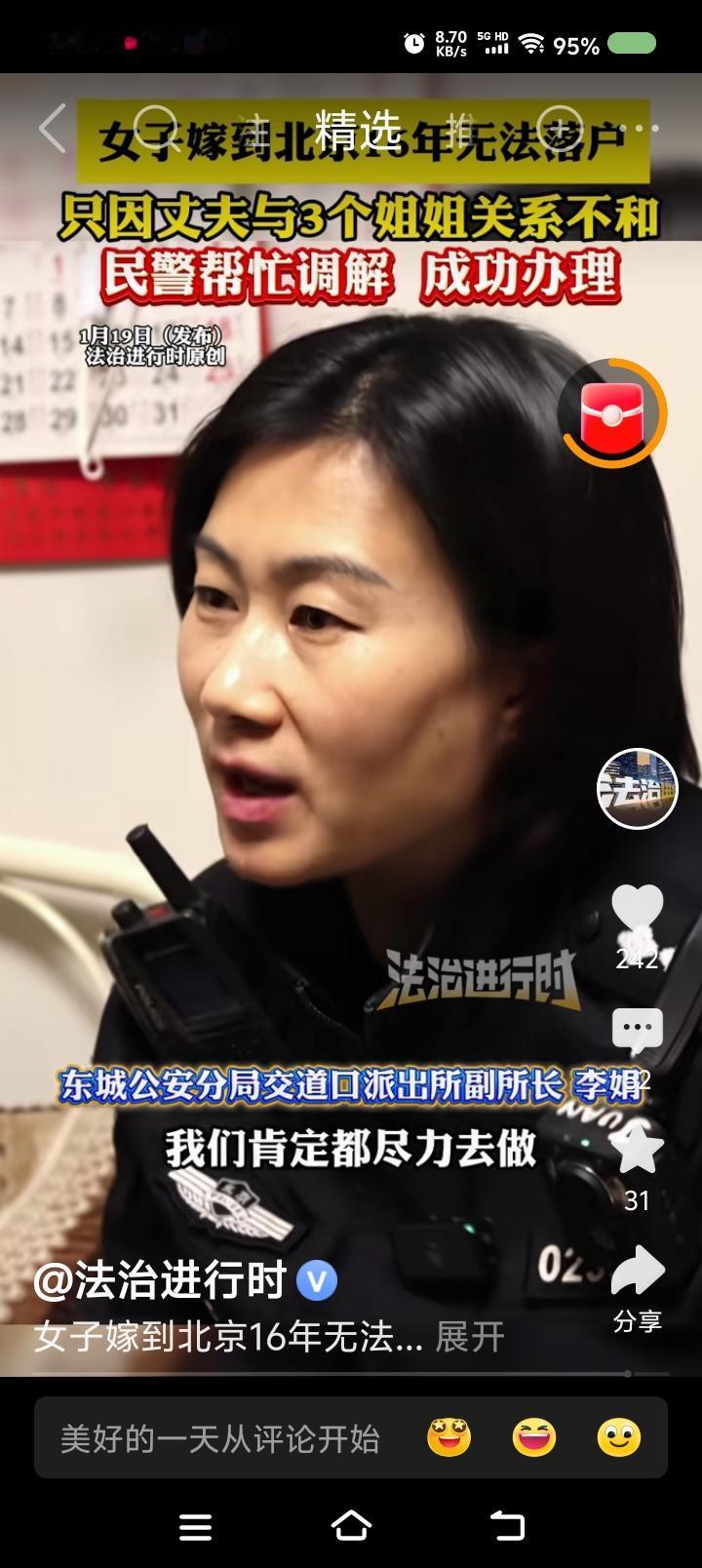 配偶办北京户口也这么难?—— 据报道,一女子嫁到北京16年,无法落户,只因丈夫与三个姐姐关系不好。民警帮忙调解,最终办理。 点评: 女子入户口,与丈夫姐姐有啥关系?丈夫一家户口在一起?她们有权阻拦? 来个北京的朋友或户籍民警,讲讲。