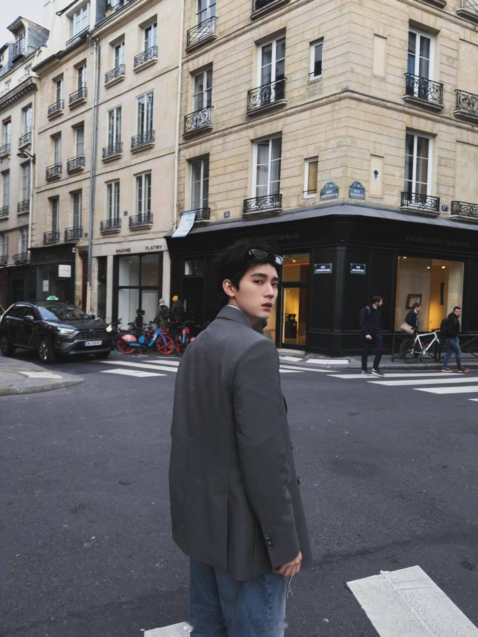 周翊然 大背头现偶男主Hello时装周周翊然这次的看秀造型,妥妥偶像剧男主走进现实 身着Ami Paris 2026春夏系列灰西装,双排扣剪裁得体利落,黑领针织+蓝条纹衬衫叠出高级层次感,牛仔裤和德比鞋一搭,慵懒优雅拿捏得刚刚好!大背头随性里带点俏皮,质感中不缺趣味,周翊然的时尚表现力从来不会让人失望💥