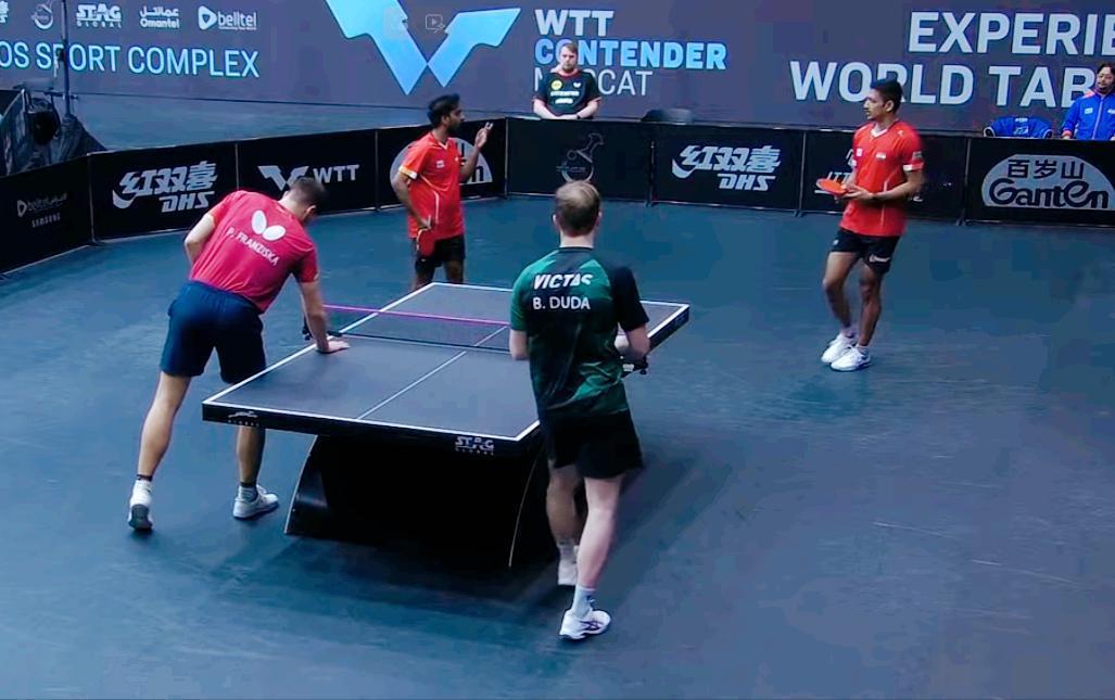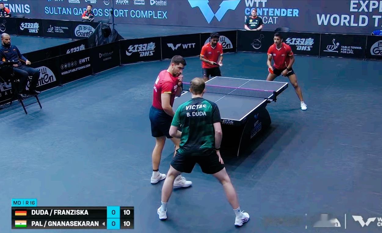 笑死我了!樊振东队长弗朗西斯卡叫上杜达来打常规赛了! 打印度弱队 , 结果差点被灌3:0! 弗朗西斯卡和杜达都是准前十的实力, 本以为打印度队, 那不是碾压吗? 结果第一局就胶着了, 最后被印度队12:10拿下 第二局 两队又胶着了, 不过印度一直领先两分, 好在最后关头, 弗队/杜达12:10扳平了, 第三局 弗朗队/杜达3:7落后, 好在8:8追上了 最后11:9逆转了。 好了,弗队和杜达毕竟是世界前十水平, 适应过来了, 估计能拿下了。 如果爆冷了, 你们喊我, 咱们一起笑话他,哈哈