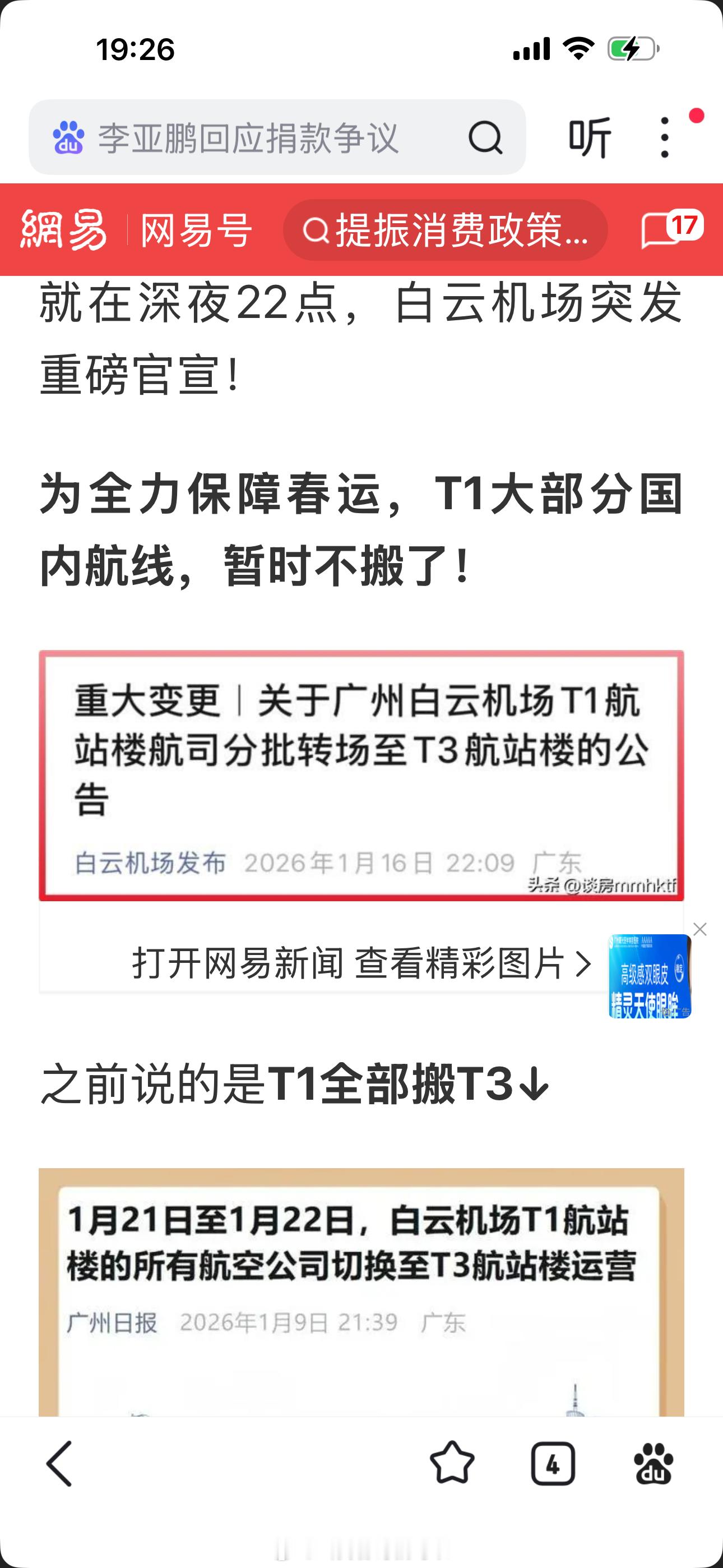 广州白云机场t1转场t3有重大变更 说不搬就不搬了?明天准备飞北京,前几天说T1