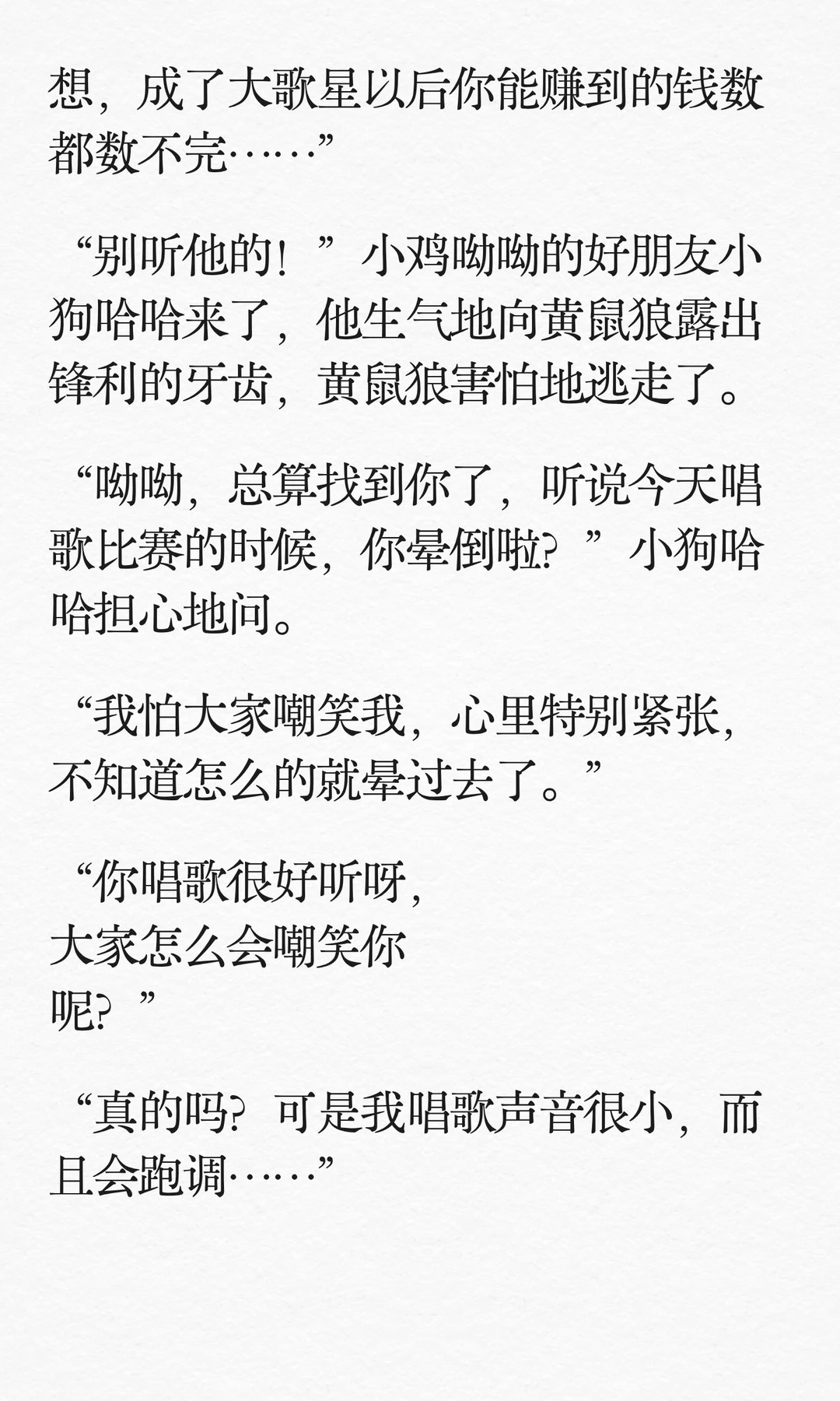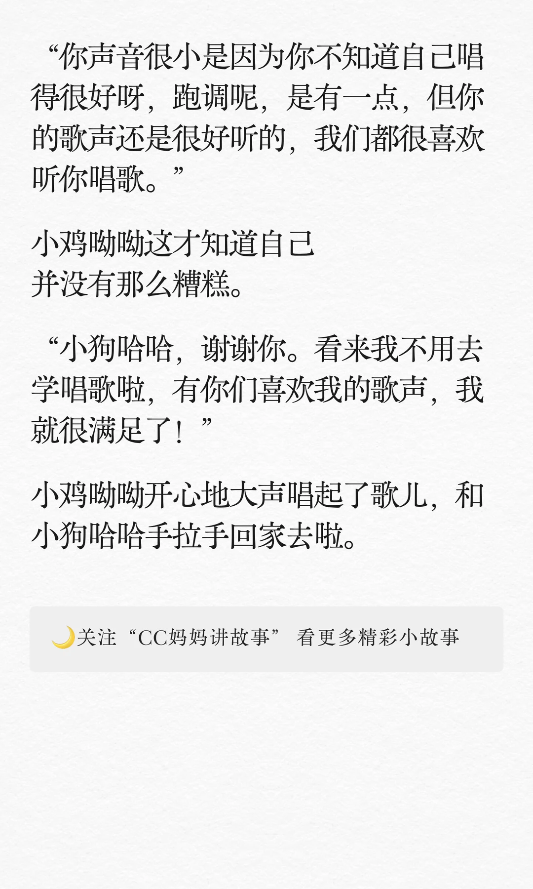 [举手R]晚上好~最近CC妈妈喜欢唱歌,所以写了一个唱歌的故事[捂嘴笑R]希望宝贝们喜欢~ [晚安R]各位大宝贝小宝贝晚安,好梦~ [私信R]文字内容是本人原创,页面图画包含AI生成素材。