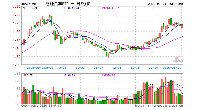 1月21日,智能汽车ETF(515250)涨0.73%,成交额5891.81万元。当日份额减少200.00万份,最新份额为6.61亿份,近20个交易日份额增加2500.00万份。最新资产净值计算值为8.19亿元。