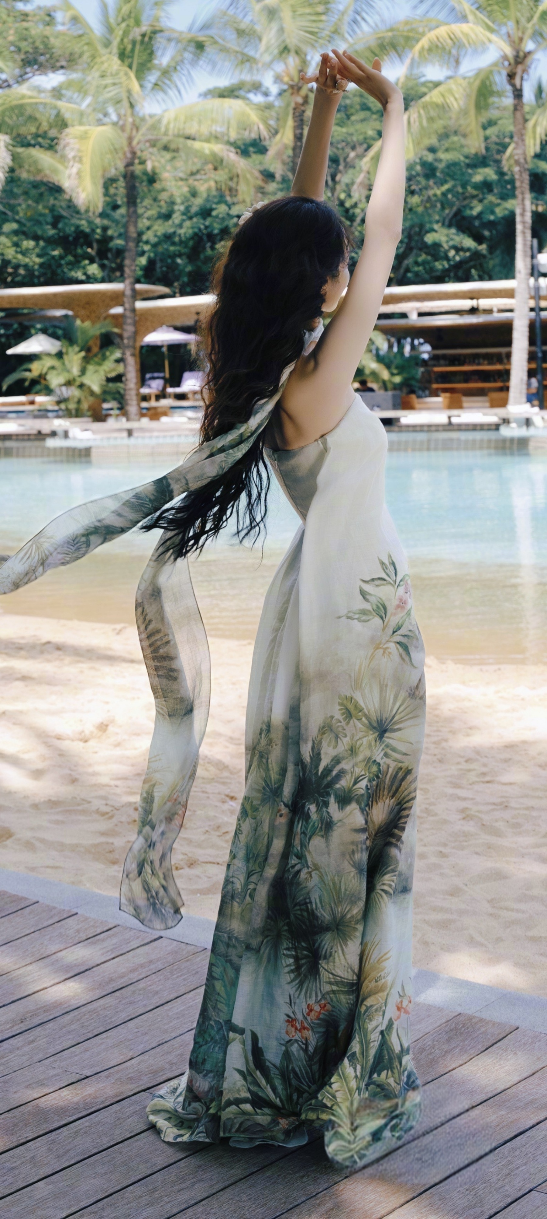 佟丽娅浅绿色纱裙穿搭,柔美优雅的丫丫状态真好。佟丽娅