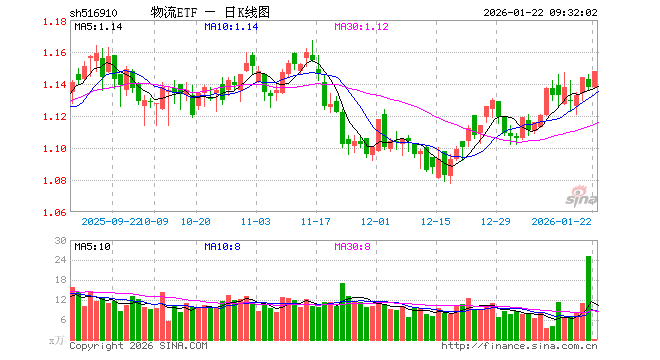 物流ETF(516910)开盘涨0.00%,重仓股中远海控涨0.07%,顺丰控股涨0.05%