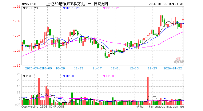 上证50增强ETF易方达(563090)业绩比较基准为上证50指数收益率,管理人为易方达基金管理有限公司,基金经理为张胜记,成立(2024-05-27)以来回报为29.02%,近一个月回报为4.73%。