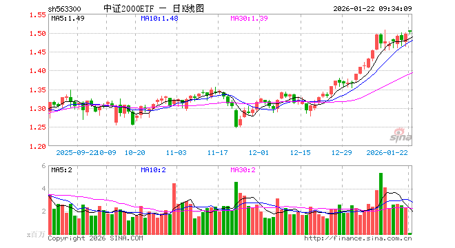 1月22日,中证2000ETF(563300)开盘涨0.60%,报1.505元。中证2000ETF(563300)重仓股方面,信息发展开盘跌0.03%,仕佳光子涨1.06%,涛涛车业跌0.25%,鼎通科技跌0.01%,骄成超声涨1.27%,炬芯科技涨0.51%,泰凌微涨0.68%,成都先导跌1.01%,华锐精密涨0.38%,瑞可达涨0.03%。