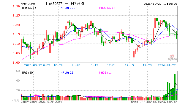 1月22日,截止午间收盘,上证50ETF(510050)跌0.64%,报3.125元,成交额57.08亿元。上证50ETF(510050)重仓股方面,贵州茅台截止午盘跌0.30%,中国平安跌1.47%,招商银行跌0.94%,紫金矿业跌2.31%,长江电力跌0.71%,兴业银行跌1.27%,恒瑞医药跌1.21%,中信证券跌0.18%,药明康德跌1.69%,中芯国际跌1.24%。