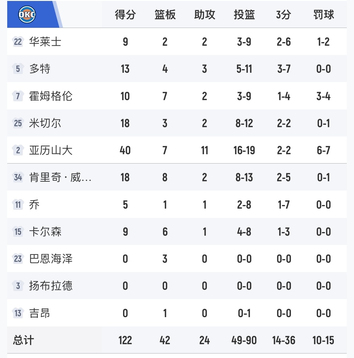 雷霆122-102大胜雄鹿,亚历山大40分7板11助攻,字母哥19分14板7助攻