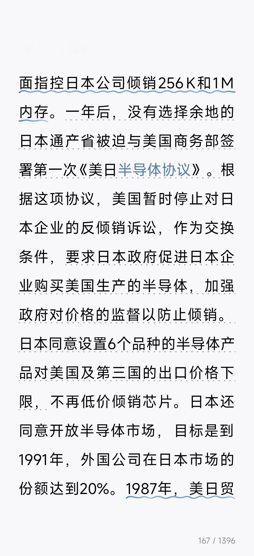 最近在读《芯片战争》。 没想到上世纪80年代的小日子这么厉害,又是帮美帝升级战机,又是开放军工技术给美帝。美帝先是发起反倾销诉讼,然后加征惩罚性关税,然后通过广场协议让美元贬值日元升值,逐渐削弱了小日子芯片产业的竞争力,然后转头又开始学习小日子开始搞VLSI计划。