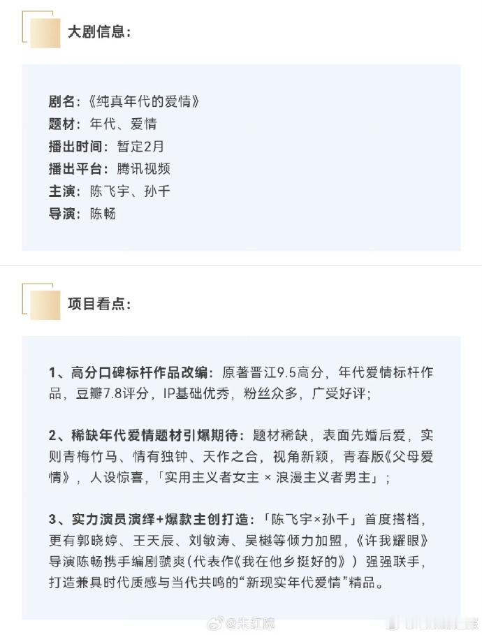 纯真年代的爱情开启招商,陈飞宇孙千新剧招商正式落地,剧集以实用主义者的爱情为核心