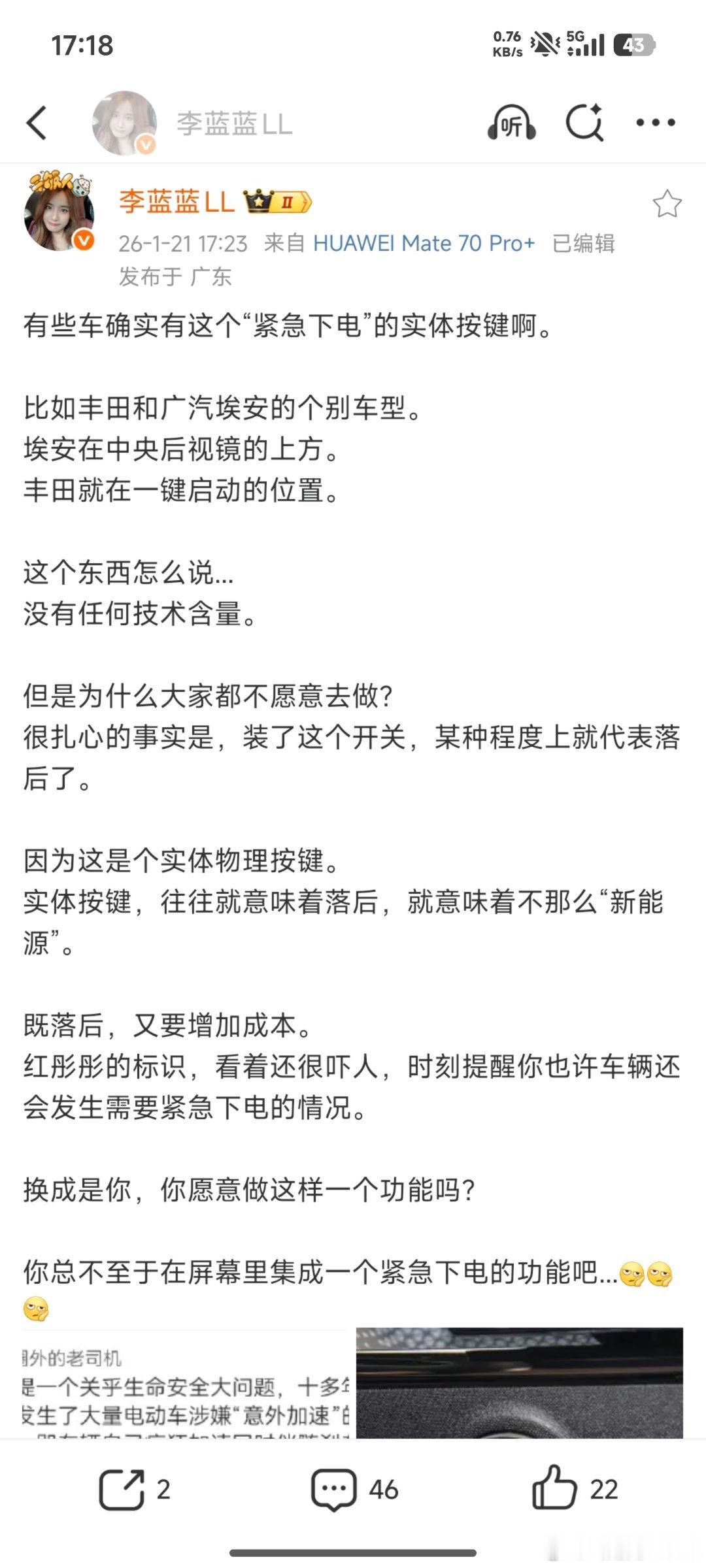 这么难找吗,真看不见吗?中控面板上面,这么醒目的按键,上面写着“START/STOP”呢这就是下电按键啊,为啥他说没有,还希望雷军召回安装呢微博夸了几个品牌,纯电车也有物理按键用来下高压电,我觉得挺好的思路,顺便评论了一下我的小米SU7也有。这位网友一直胡搅蛮缠。现在照片有了,快去给雷军点赞吧