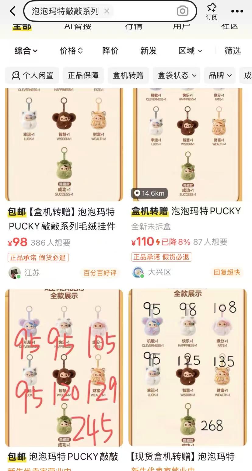 本月,泡泡玛特新推出的“PUCKY敲敲系列”毛绒挂件盲盒,因轻拍即可发出清脆木鱼声,被网友戏称为“电子木鱼”,短短数日便席卷社交网络,官网售罄、二手溢价翻倍。