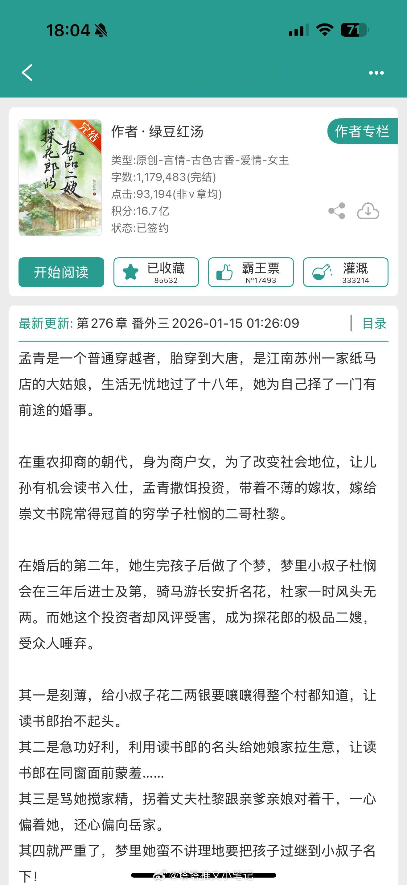 推文 《探花郎的极品二嫂》BY绿豆红汤 前世今生/权谋/ 这篇文打破了以往我对主人公的认知,一直以来我都觉得和女主相爱的人是男主,但这篇文里,女主的丈夫多是一个阶段性的辅助人物,男主即书名里的探花郎小叔,故事围绕着女主借男主小叔的东风,发扬光大纸扎明器,送男主步入青云,再化为男主身后的军师,两人相互扶持,最终官拜宰相,女主也因往日的政绩、女皇的扶持,步入朝堂。 这篇文最好看的就是男女主治理地方,化解危机,到后期稍微有些疲惫,但作者也在加速事件发展的进程,节奏把握得很好。 作者本想在女主第一次获封官职时完结,但后面觉得女主可以在她笔下走得更远,确实,到后面女主政绩斐然,一再获封,故事已经能延续到第三代了,我认为在这里结束是合适的。 这是一篇非常值得一看的文,剧情紧凑,强推!