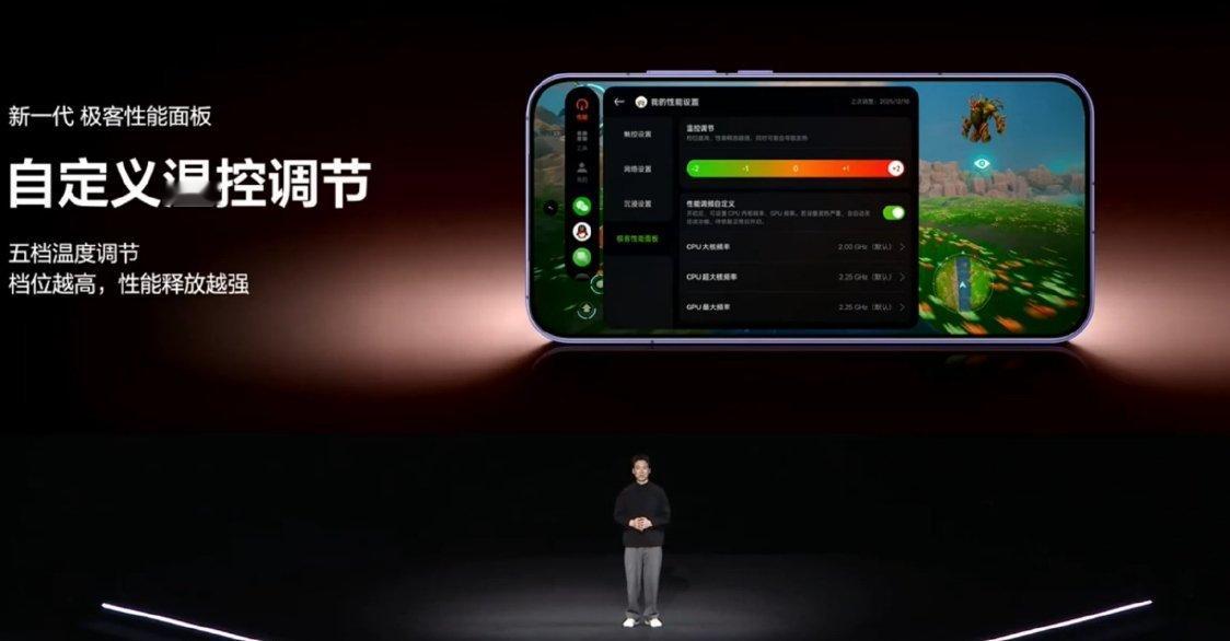真我 Neo8 升级新一代极客性能面板,支持自定义温控调节、自定义芯片频率,要发挥出顶级硬件的实力,调教也至关重要。新一代GT性能引擎,就是真我Neo8的“智能大脑”。 ▸ 先知能效调度:AI预知游戏性能负载,在保证游戏帧率稳定的同时,尽可能地降低功耗和发热▸ 游戏专属性能核心:多核心隔离算法,保障游戏运行不受干扰▸ 超级帧率算法:GPU超帧,为更多游戏带来稳定的165Hz游戏体验在GT性能引擎的加持下,Neo8在《和平精英》《三角洲行动》《穿越火线-枪战王者》《使命召唤手游》四大主流枪战手游中都实现了165Hz无限满帧;在国民级MOBA手游和大型开放世界手游中,也有稳定的帧率表现。真我Neo8