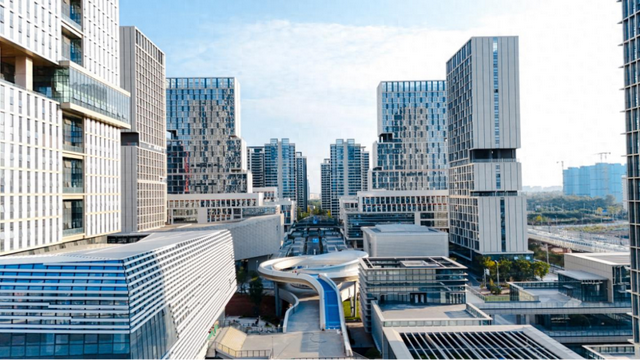 面积约37万平方米的新校区,以“开放立体、多维互联”为特色。校园被绿轴与中轴线交汇切割成灵动空间,5座桥梁串联起8个综合体,实现学习、生活与运动无缝衔接。