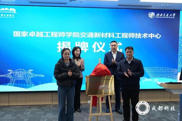 作为西南交大东部(国际)校区揭牌启用后的校地企活动,当天下午,“产业兴东·智创未来——成都东部新区校地企面对面座谈会(西南交通大学专场)”在西南交通大学东部(国际)校区举行,企业出题、高校答题、地方协同,成都东部新区企业与西南交大技术“面对面”,谈合作、促牵手。座谈会上,国家卓越工程师学院交通新材料、新能源、绿色建筑三大工程师技术中心揭牌。