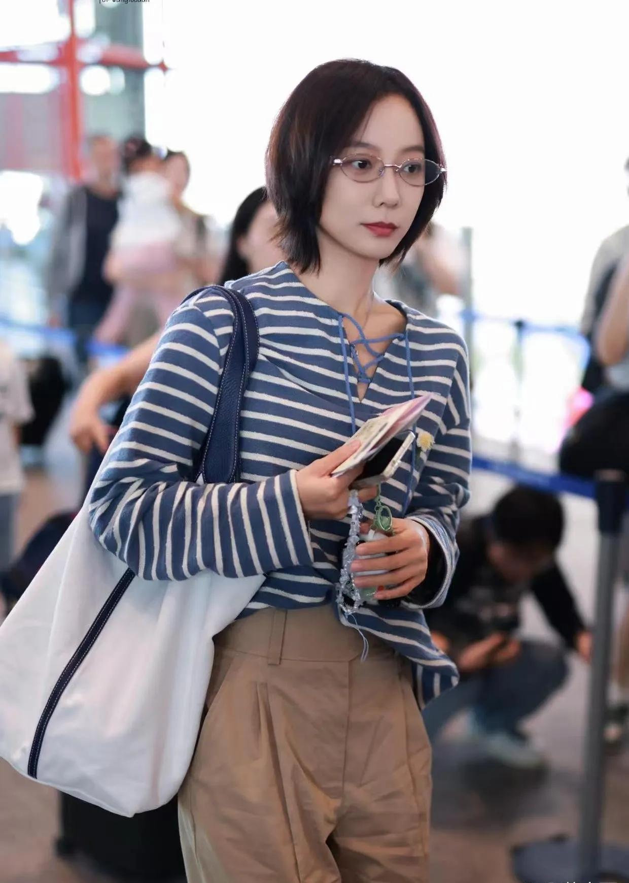 王珞丹这松弛感,是把机场走成了街拍现场✨ 蓝白条纹T+卡其阔腿裤,随性又清爽,配上熊猫挂饰和眼镜细节,减龄又有少年感。 没有刻意凹造型,却把松弛感焊在了身上,这才是普通人能直接抄的机场穿搭! 王珞丹 机场私服 松弛感穿搭